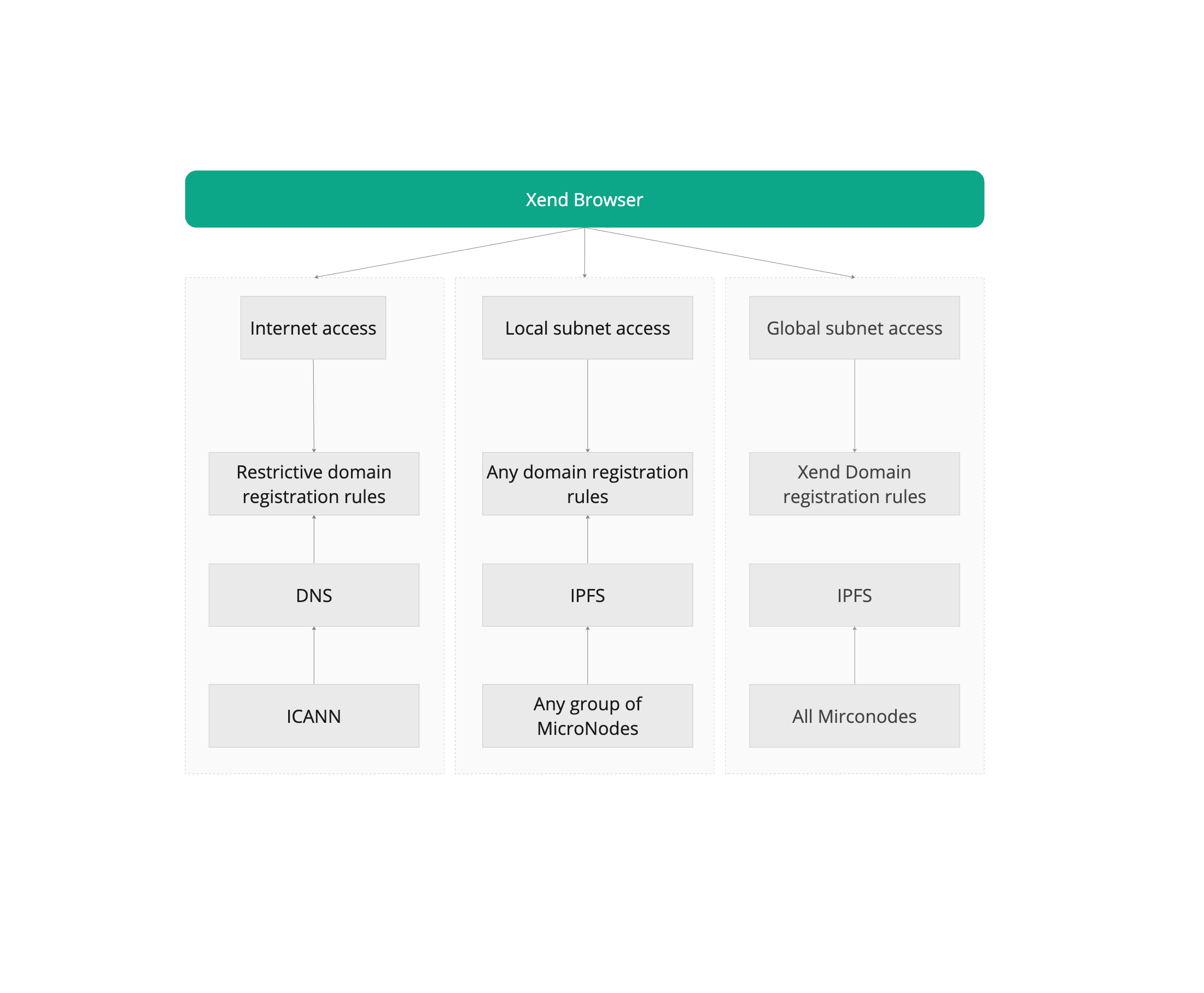 The Xend Browser introduces the capability to create subnets, empowering any node or collective of nodes to establish a 'Subnet' accessible to all Xend Browser users. Administrators of these subnets have the autonomy to set up their domain registration and hosting fees policies.